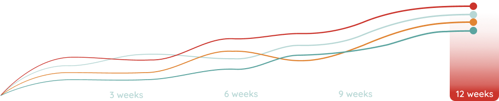 By this stage, your body has reached a deeper reset. Inflammation, hormonal imbalances, and prostaglandin surges are under control, leading to ease in cramps, stable weight, and improved cycle consistency. Other benefits are sustained energy, clearer skin, and smoother digestion, supporting overall hormonal resilience and smoother cycles in the long term.*