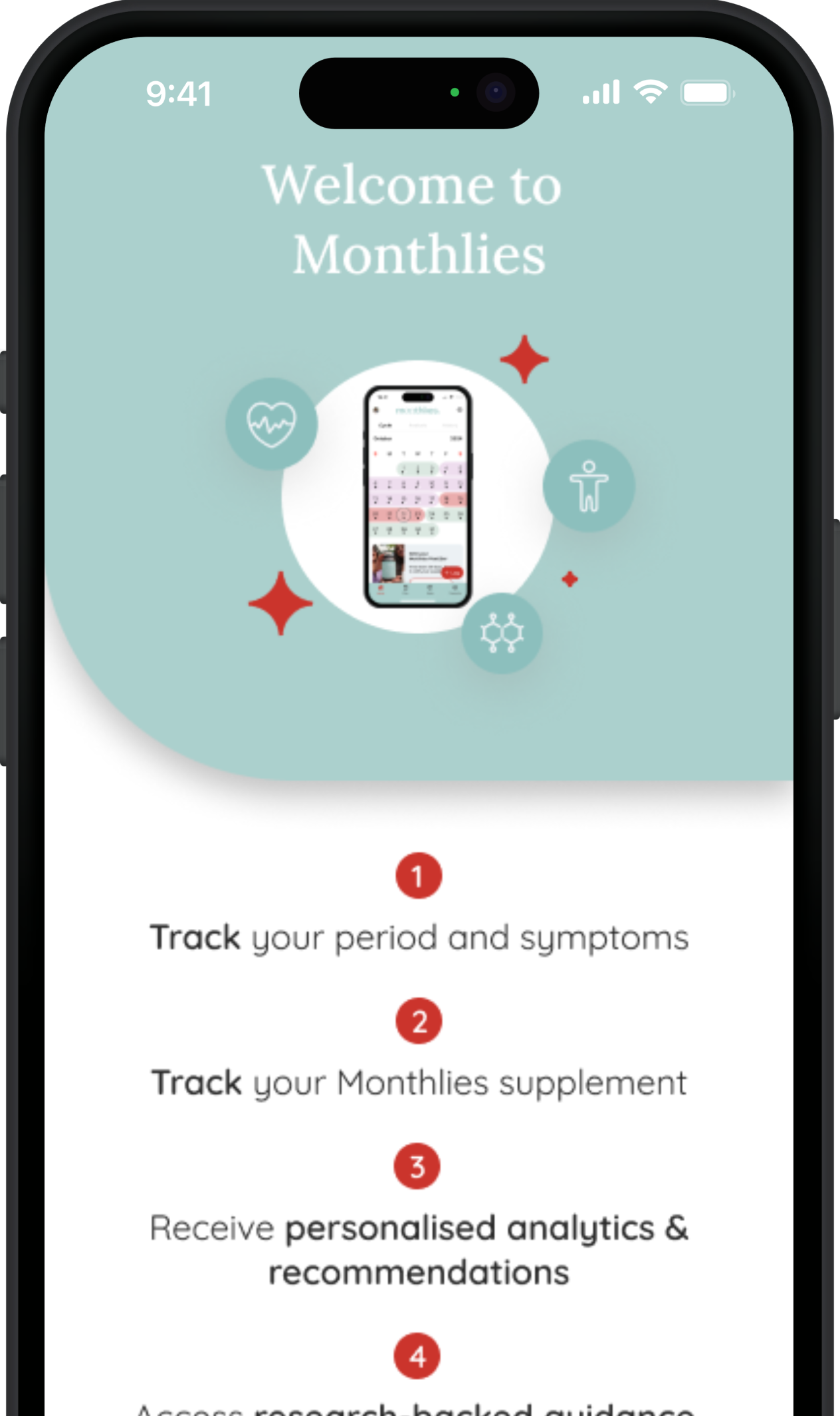 The app helps you track your menstrual cycle, symptoms, and supplement intake while providing personalized nutrition and lifestyle guidance to balance your hormones.