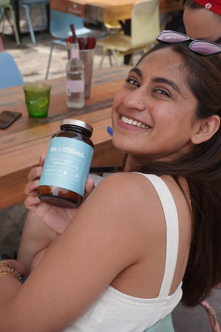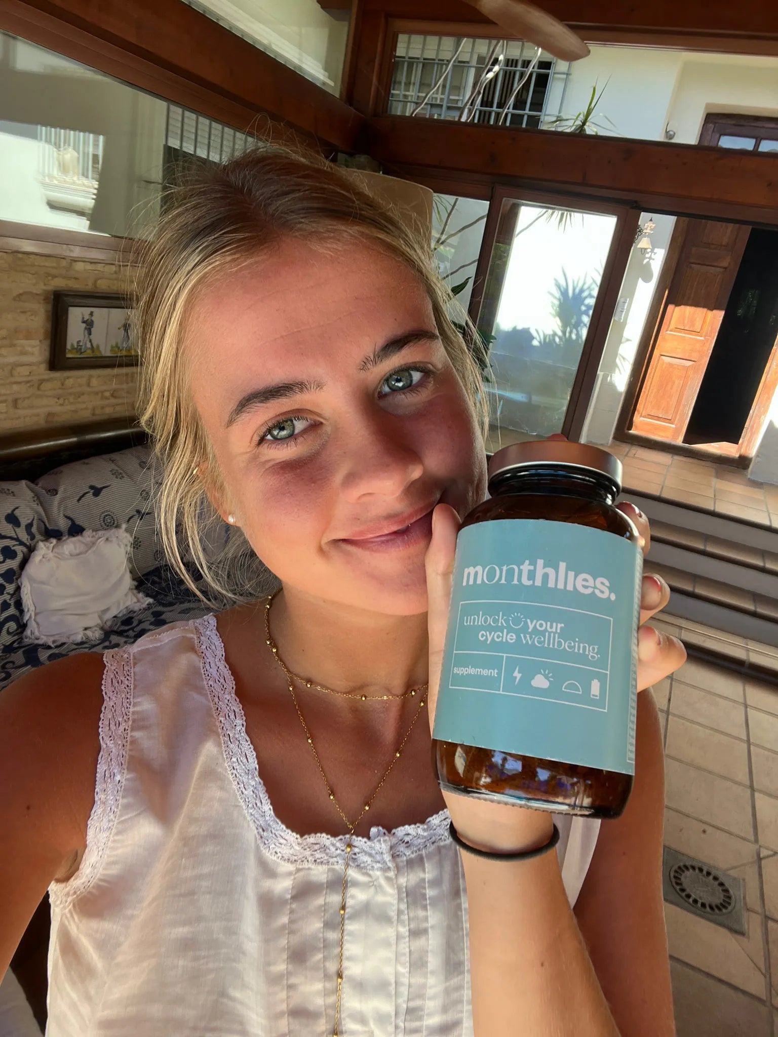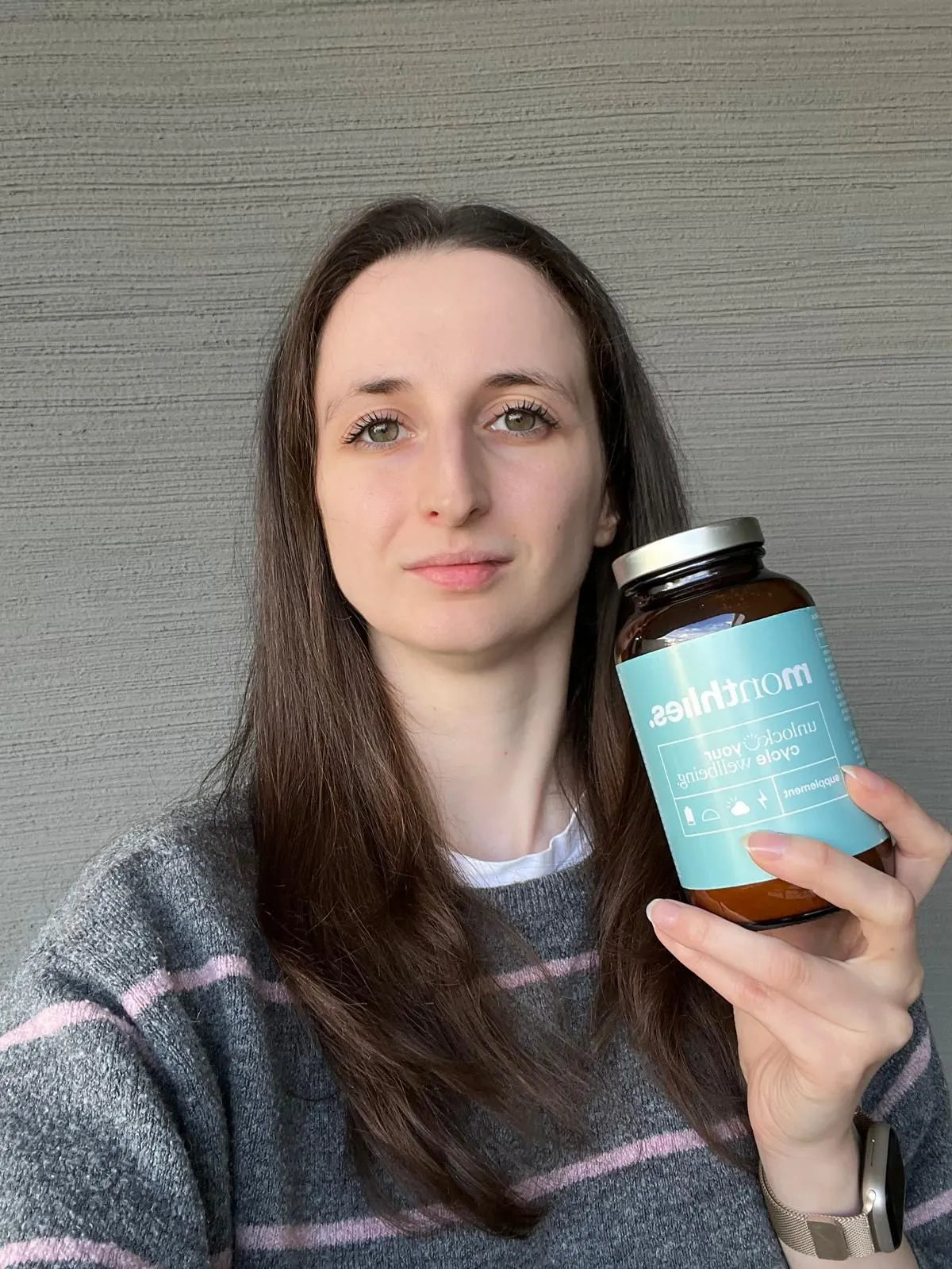 “After just a few weeks of taking monthlies I’ve noticed a significant improvement in how I feel during my cycle. The cramps that used to keep me curled up on the couch are now much more manageable, and the bloating I dreaded every month has drastically reduced. I also have fewer mood swings and way more energy, even during my toughest days.”